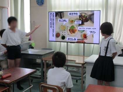 ポプラの6年生2名が、修学旅行の思い出をパワーポイントで発表しました。大型テレビの写真を見て、みんなは大喜びでした。