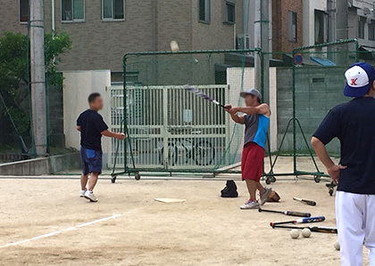 持ち物は運動シューズだけでOK。グローブとバットは貸してもらえます。