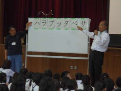 3時間目は講堂にもどって、交通安全と防犯の学習です。