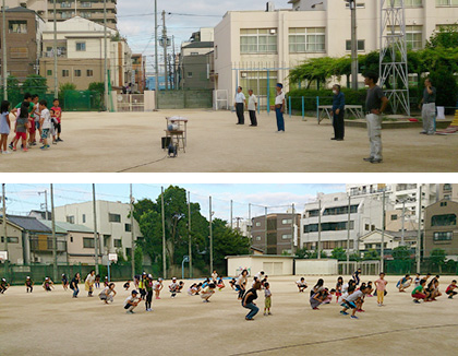 ラジオ体操は、体協(西区体育厚生協会)の方々が主催してくれています。あいさつも忘れないようにしましょうね。