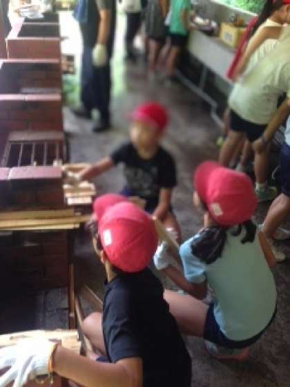 飯ごう炊さん場に移動して、昼食のカレーライス作りです。