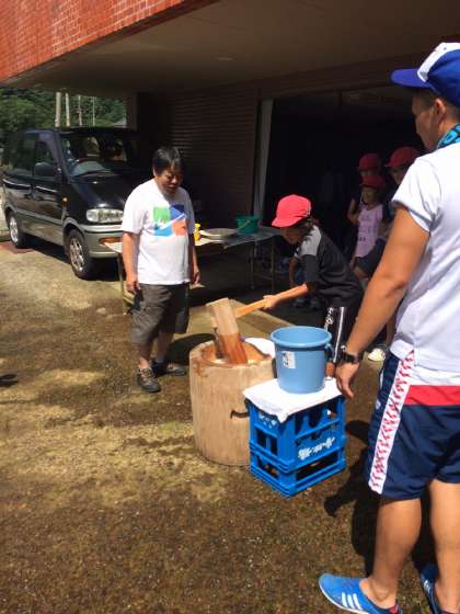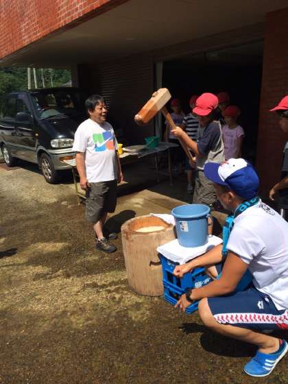 自然散策を終え、宿舎にもどると、今度は餅つきです。