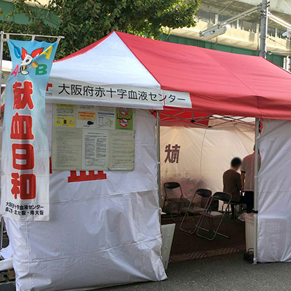 10月23日(月)、九条駅そば 三菱東京UFJ銀行 九条支店前にて五校園PTA献血が行われました。