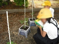 5月14日水曜日、2年生の児童が昨日、鉢に植えたミニトマトの観察を行いました。毎日世話をして、しっかり育てていきたいです。