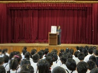 5月23日金曜日の音楽朝会で、全校児童がそろって、「ありがとうの花」を歌いました。この歌は、4月から、各学級で練習したり、音楽の時間に歌ったりしている歌です。今学期、初めてみんなで一緒に歌いました。講堂に素敵な歌声が響きました。