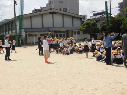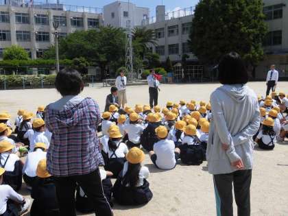 今日は今学期初めての避難訓練を行いました。家庭科室からの出火を想定した訓練をしました。今回、全学年が避難完了するまでにかかった時間は3分30秒でした。