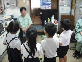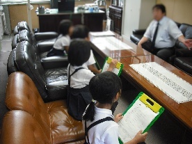 6月18日水曜日、「学校の先生たちと仲良くなろう」という学習で、1年生の子どもたちが、普段、あまり話したことのない人のところへ行き、いろいろな質問をして交流を深めました。校長先生や教頭先生、管理作業員さん、事務職員さんのところなどへ行きました。校長室へ行った班の人たちは、少し緊張していた様子でした。