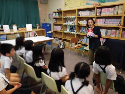 子どもたちは一緒に「も〜」と鳴きまねをしたり、「ひゃー」と驚いたり、お話に夢中でした。