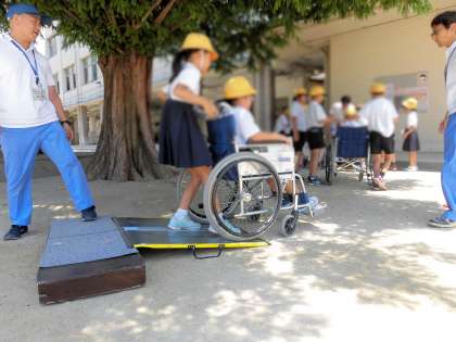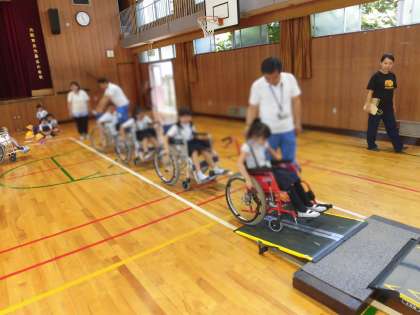 3年生は総合的な学習で「福祉」について学習してきました。その中で、車いすについても学習し、今日は実際に車いすに乗ったり押したりして体験しました。活動後、子どもたちからは「乗ってみると、意外と怖かった」「小さな段差でも、乗り越えたり押したりするのが難しかった」などの感想が出ました。実際に体験することで、いろんな人の気持ちを考えられたかと思います。ご家庭でも、子どもたちに話を聞いてみてください。