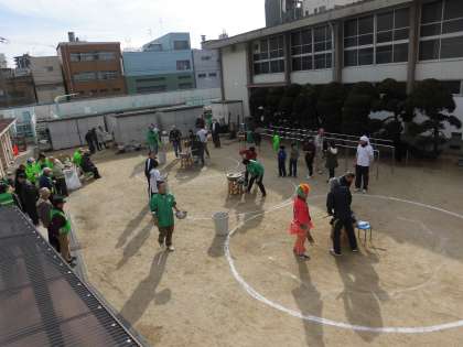 運動場から焼き餅の良い香りが、職員室前の廊下まで届いてきました。