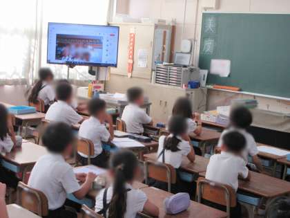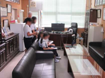 週の初めの児童朝会は、校長室から配信で行いました。