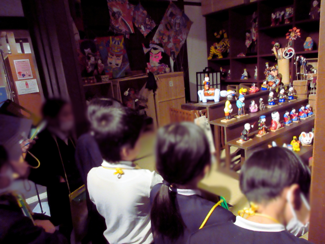 昔のくらしの道具の使い方を考えるクイズや、建物の中に再現された街並みの見学をしました。
