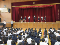 九条地区3小学校の2年生が九条北小学校の講堂に集まりました。