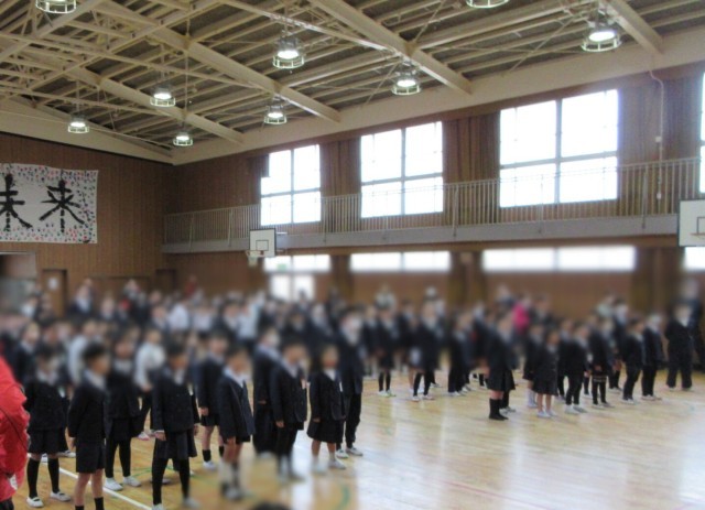 卒業をお祝いする会に向けて、1~5年生が6年生に送る歌の練習を行いました。