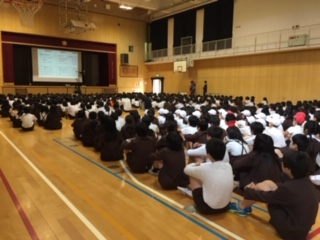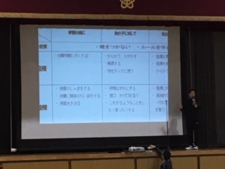 児童朝会で、西村先生より「学校安全ルール」の説明がありました。