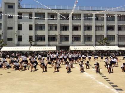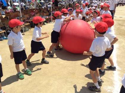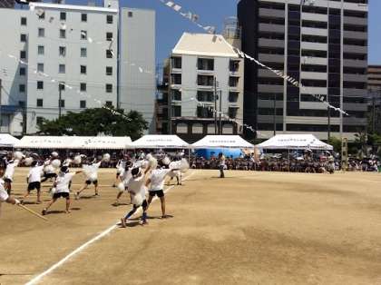 5年生「本田ソーラン2019」、紅白対抗大玉リレー、「応援合戦の」様子です。