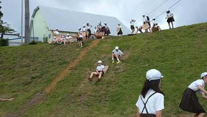 坂をすべったり走ったり、子供達は笑顔いっぱい元気いっぱいです!
