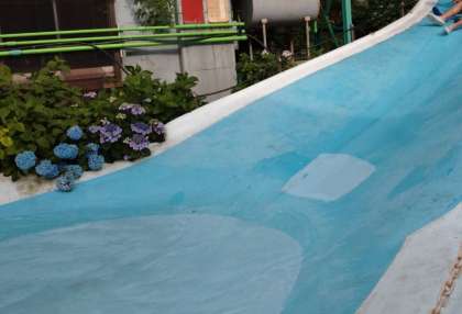 班全員が魚をGETしたら、次はウォータースライダーです!