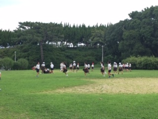 芝の上でゴロゴロ転がったり、鬼ごっこをしたりして汗だくになりました。