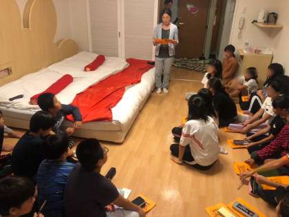 活動班の班長は明日の課題を確認し、さらによい活動になるように意見を出し合いました。