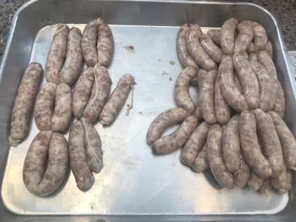 柔らかい羊の腸に悪戦苦闘しています。