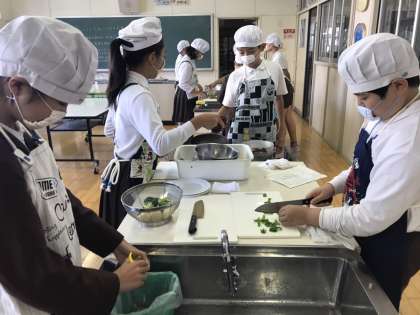 「おいしくて元気が出るお弁当をつくろう」というテーマで、調理実習をしました。