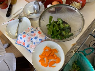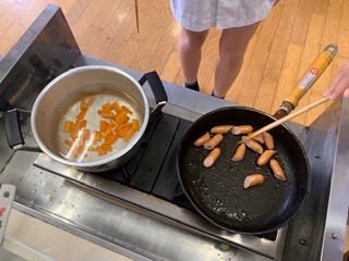 今日は、そのメニューを実際に自分達で、主菜、副菜の味付けを考えながら調理しました。