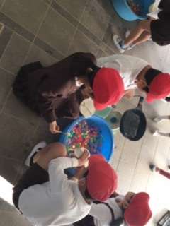 (写真上から今回の目当て、スーパーボール救い、宝さがしの様子です。)