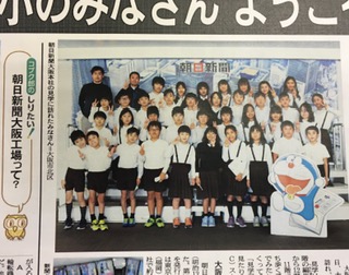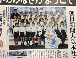 お土産に「本田小5年生が朝日新聞を見学」の記事がトップになった朝日新聞号外を頂きましたので、掲載しておきます。