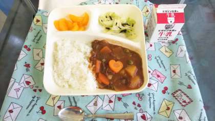 今日のハヤシライスは、にんじんをいくつかハート型にしました。