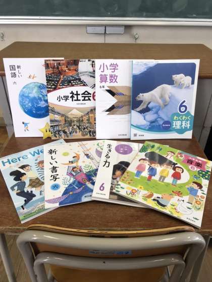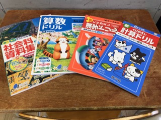 教科書以外では、社会科資料集、漢字ドリル、算数ドリル、計算ドリルの4冊です。
