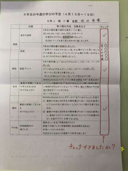 毎週、課題が出ます。やり残しがないように、計画的に進めていきましょう。