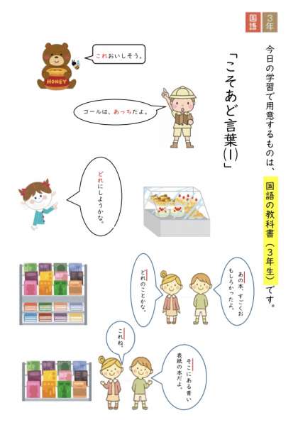 学習内ようは、国語の『こそあど言葉』の1回目です。