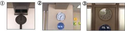 さて、ここでクイズです!この写真の時計は、学校の中にある時計です。どこにある時計でしょうか。