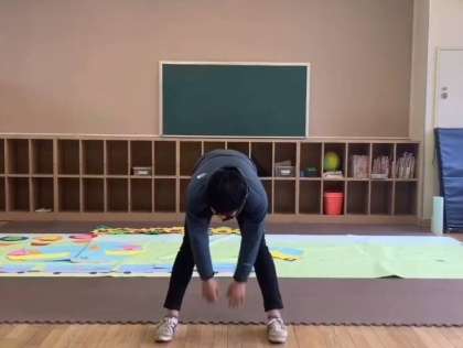 いえのなかで できるたいそうを かんがえてみました。おうちのひとと やってみてください!