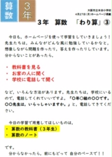 ※本田小学校ホームページの休業中特設(きゅうぎょうちゅうとくせつ)ページに学習内ようがのっています。