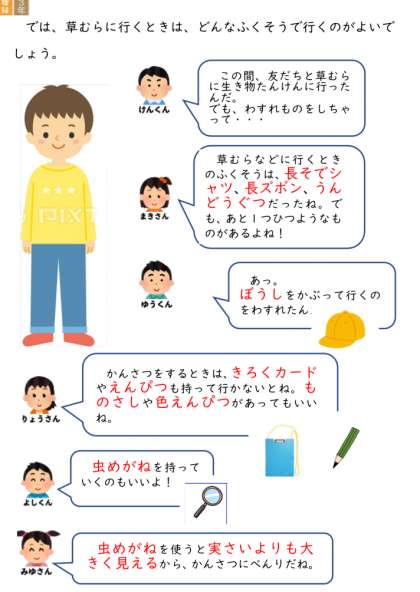 春の生き物がたくさん出てきますよ。こうえんや野原に行った気もちでべん強しましょう。
