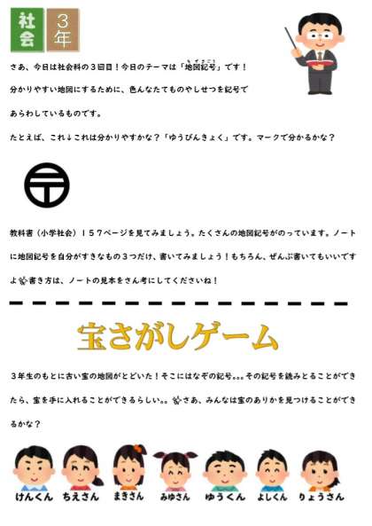 ※本田小学校ホームページの休業中特設(きゅうぎょうちゅうとくせつ)ページに学習内ようがのっています。