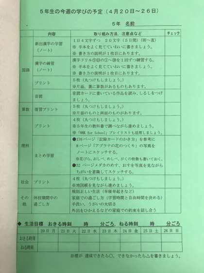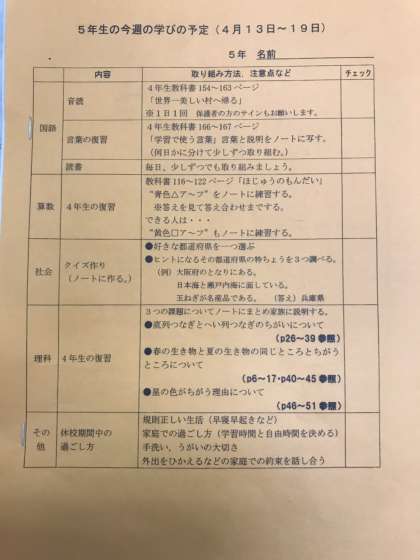 ゴールデンウィークの期間を上手に使って、お家の人と相談しながら進めましょう。