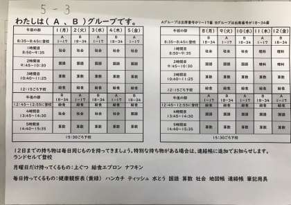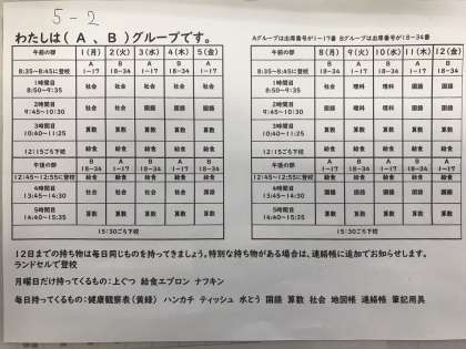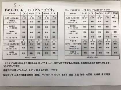 今日の写真は月曜日からの流れになります。各クラスで配布しているものなので、自分のものでも確認してみてください。