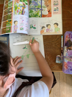 毎日、水やりをしている朝顔がぐんぐん育ち、蕾がふくらんできました。「早く咲くといいのにな。」「私のは何色かな。」と、花が咲くのをみんな楽しみにしています。