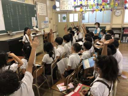 今週から新しい時間割になり、学習を進めています。国語では、詩を音読したり、夏休みの出来事をスピーチしたりしました。算数は、「10より大きな数」の学習で、10のまとまりを作る数え方や、答えが10より大きくなる計算の仕方を、ブロックを使って学びました。