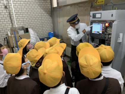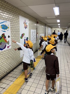 大阪メトロ阿波座駅の改札までの通路に飾られている絵も見に行きました。子どもたちは、拡大されて飾られている自分たちの絵を、うれしそうに見ていました。券売機の裏側を見せていただくという、サプライズもありました。