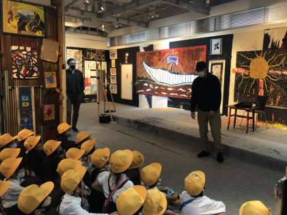 黒田征太郎さんのお話も聴くことができました。子どもたちからの質問タイムもありました。「時間を忘れるくらい没頭できる、自分の好きなことを見つけて、コロナに負けず、元気に頑張って下さい!」というメッセージをいただきました。