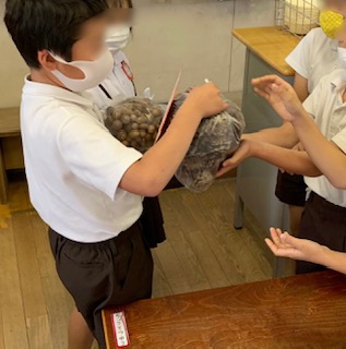 この時期から、生活科の学習では、秋見つけをしていきます。各ご家庭にも、どんぐり・松ぼっくり集めを呼びかけ、ご協力いただきました。ありがとうございました。2年生からも、どんぐりのプレゼントがありました。服部緑地へ遠足に行った時に、1年生のために拾ってきてくれました。