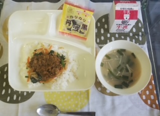献立は、コンクール献立の「カレービビンバ、トック、いり黒豆」でした。