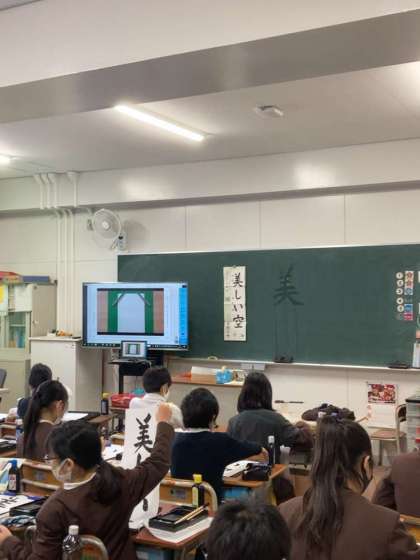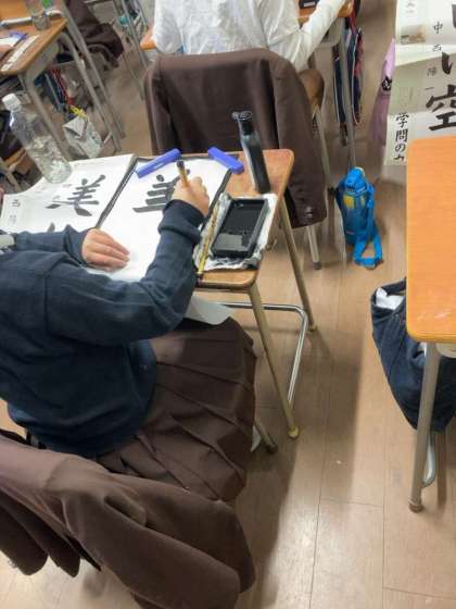 の3つを意識して、毛筆「美しい空」に挑戦しました。