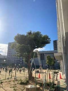 密集すると内側に日光が当たらなくなり、風通しが悪くなり、病害虫の被害にもあいます。また、強風で飛ばされて子どもたちがケガをしないために、今回は選定作業をしていただきました。