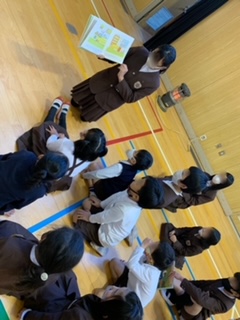 6年生との交流では、本の読み聞かせをしてもらいました。練習をしてきてくれた6年生の読み聞かせに、みんなは身を乗り出して聞き入っていました。本の内容にちなんだクイズを出してくれたり、手遊びで楽しませてくれたり、1年生は大喜び。6年生の、ちょっと照れながらもとても優しい振る舞いに、ほっこりした雰囲気の素敵な時間になりました。