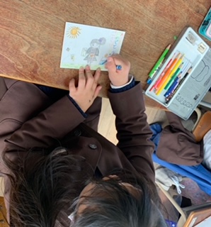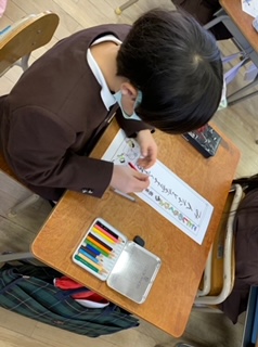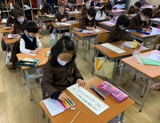 3学期の最初の授業は、今年の目標を考えたり、年賀状を書いたりしました。2年生に進級するまでの残り3カ月で、どんなことができるようになりたいか、何を頑張りたいか、子どもたちなりに一生懸命考えて書いていました。